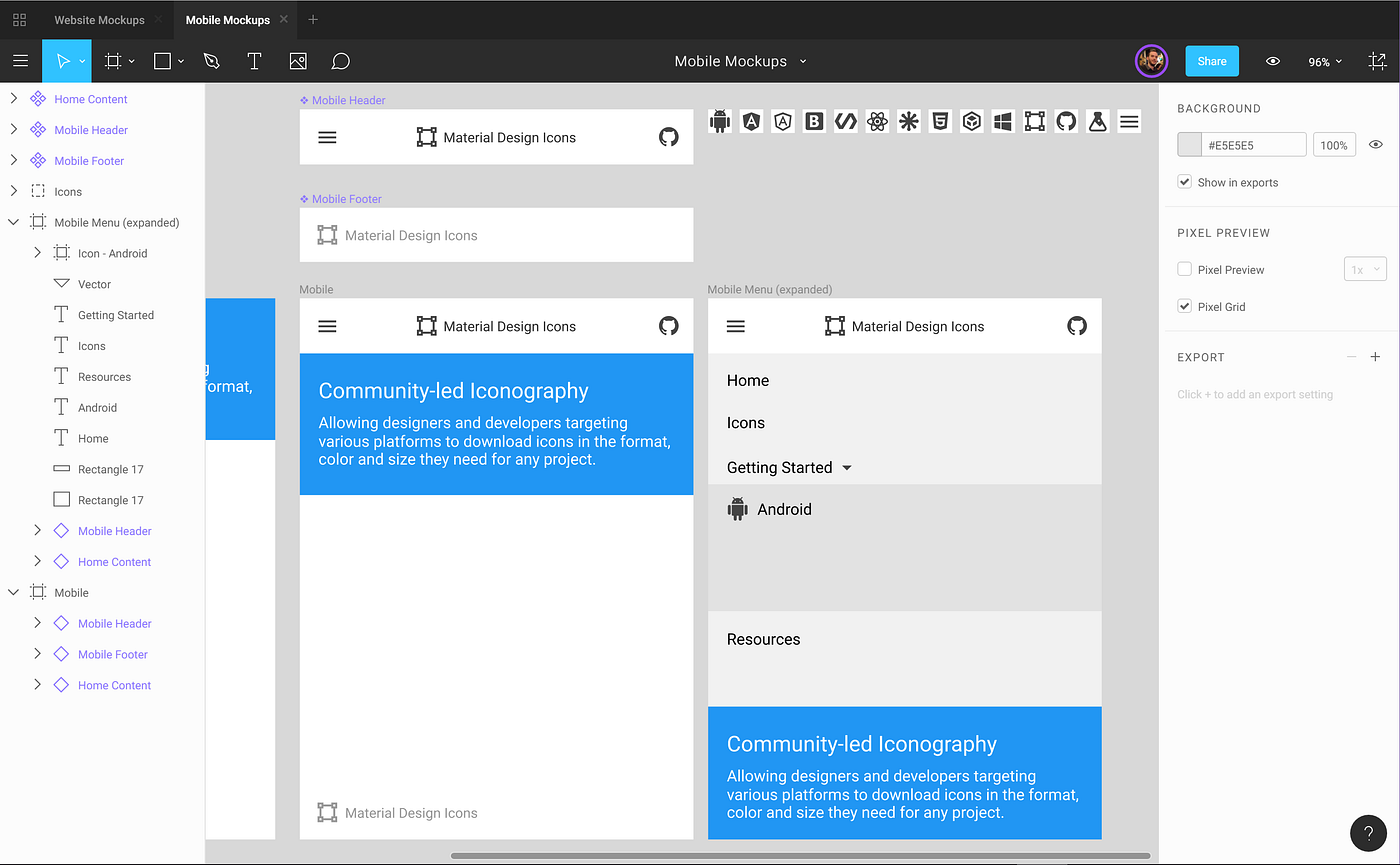 - Libraries and styles make it incredibly easy to save symbols, grids, type ramps and UI parts